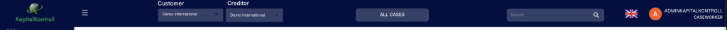 The top menu has the “KapitalKontroll logo”, this takes you back to the front page from anywhere in the system.